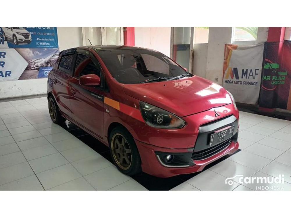 Mitsubishi MIRAGE 1.2 GLS Sport Automatic 2014\n\nHarga Kredit 98jt\n\n*Tdp 24jt\n-Angs 2393 X59bln\n-Angs 2635 X47bln\n\n*Tdp 25jt \n-Angs 2370 X59bln\n-Angs 2750 X47bln\n\n*Tdp 27jt \n-Angs 2462 X59bln\n-Angs 2791 X47bln\n\nHarga Cash 105jt\n\nMobil Bagus Siap Pakai\nKilometer 98ribuan \nWarna Merah\nPlat W\nPajak bulan juni sd 2025\n\nDijamin gak bekas nabrak\nInterior rapi dan bersih \nJok Semi Bekleed\nbebas rokok\nAc duingiiin nyess\nHead Unit 2Din\nAudio Pioner\nDouble Airbags\nElectric mirror\nBodykit ada Stiker \nFoglamp\nVelg racing\nBemper Depan Belakang diberi warna hitam kesan sporty\nBan tebal\nKaki2 Oke\nMesin Kering\nDokumen atau Surat2 Lengkap\n\nMonggo langsung Cek unit,bisa Test Drive...\n\nLangsung GerCep