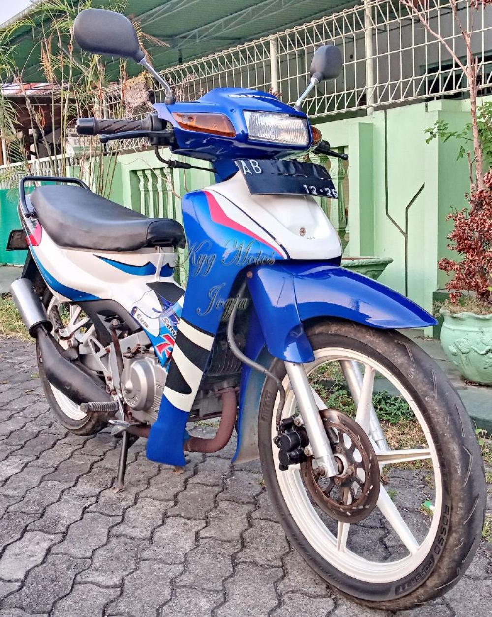 Jual Motor Suzuki Satria Biru 2001 di Yogyakarta - SUZUKI SATRIA 120 R (2 TAK) BIRU PUTIH 2001 (VERSI KOPLING MANUAL) Plat AB Bantul, Pajak Hidup, Surat Lengkap Kondisi Original Terawat Harga Nego Di